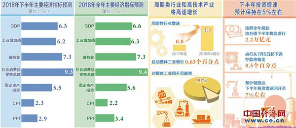 再次,制造业投资上行至7%左右。年初以来,制造业投资呈现平稳回升态势,主要得益于民间投资的快速增长。在结构性去杠杆环境下,下半年民间投资有望保持较快增长。同时,前期企业利润情况较好,加之在中美贸易摩擦压力之下,我国高新技术产业引进消化再吸收的渠道被封锁,企业自主创新或将发力,高新技术制造业的投资增长或将成为拉动整体制造业投资增长的重要力量。预计制造业投资将继续保持平稳回升态势,下半年增速回升至7%左右。