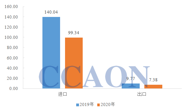 2019-2020年1-2月我国原盐进出口数据对比(单位:万吨)