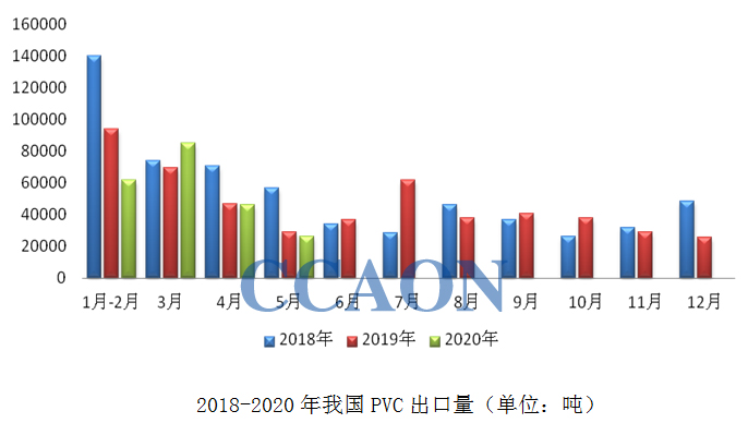 目前,国内PVC现货市场交投气氛表现黯淡,主要由于期货合约价格不断下探,现货市场受到冲击,利空因素主导。厂家方面开工持续高位,库存压力进一步加大,卖方出货顺畅度不佳,使得国内PVC市场重心下行。根据中国海关数据显示,2020年5月,我国PVC纯粉出口量为2.61万吨,环比减少43.16%。目前,国内PVC价格回调,国外PVC外盘报价不断走高,使得国内PVC出口企业活跃度上升。台塑公布7月PVC船期报价,整体来看,7月份较6月份PVC报价上涨90-100美元/吨。