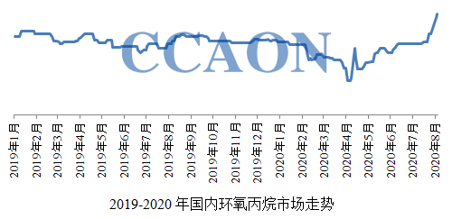 近期,国内环氧丙烷市场持续上涨,成交气氛表现积极,行业盈利情况出现好转。主要下游聚醚行业进入采购旺季,市场成交持续放量,加之聚醚出口市场呈现修复式发展,出口订单逐渐增多,拉涨环氧丙烷工厂报价预期。相比7月底,目前国内环氧丙烷市场均价上涨1000元/吨。