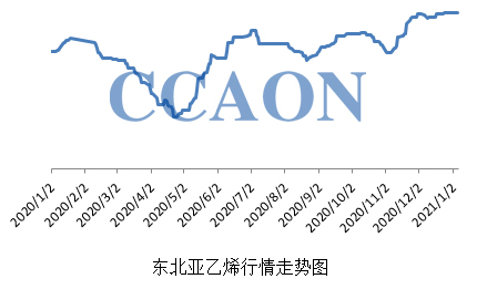 乙烯市场,由于日本ENEOS、韩国LG等多套裂解装置停车,东北亚乙烯供应量有所减少,货源紧张的情况下,报盘价格仍维持在高位。国内市场,出现有企业检修,也支撑了国内乙烯行情不断提升。