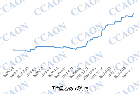 近期,国内氯乙酸市场报盘继续上调,主流成交价格达到近年来最高峰。由于厂商前期预售情况较好,加之原料冰醋酸价格明显上涨,液氯行情高稳,成本支撑增加,坚定了企业出货报盘的信心,推动氯乙酸行情不断走高。