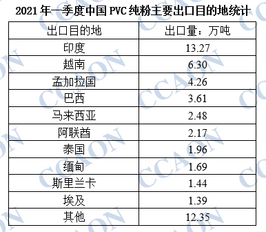 从出口目的地分析,由于美国装置受寒潮影响导致出口量锐减,作为主要消费市场的印度,货源紧张的矛盾加剧,对中国PVC纯粉的采购热情高涨。