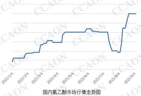 8月份,在供应和需求的共同支撑下,国内氯乙酸市场涨幅明显放大,部分区域成交重心触及近几年的最高点。生产企业方面,由于河北部分企业因环保问题临时停车,与此同时,山东地区主要厂家轮修减产,氯乙酸市场货源供应量减少明显。而下游消费市场,农药进入开工旺季,对氯乙酸的需求量稳定在高位。两相作用下,国内氯乙酸市场出现供应减少需求增加情况,下游加价采购推动行情不断上行。