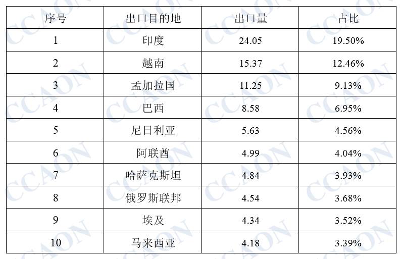 从出口目的地统计,印度仍是中国PVC纯粉出口的主要目的地,1-8月份,中国出口至印度的PVC纯粉达到24.05万吨,占中国出口总量的19.5%;出口至越南的PVC纯粉15.37万吨,占中国出口总量的12.46%;出口至孟加拉的PVC纯粉11.25万吨,占中国出口总量的9.13%。