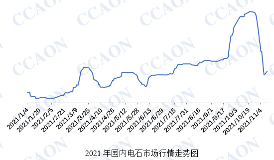 自10月下旬开始,由于国家对煤炭市场的干预,煤炭成交重心大幅下跌,煤电企业成本压力明显缓解,各地电力供应紧张的局面陆续好转。受此支撑,西北电石炉整体开工负荷不断提升,货源供应量增加,导致电石行情自高位迅速回落,部分地区跌幅甚至到达50%。