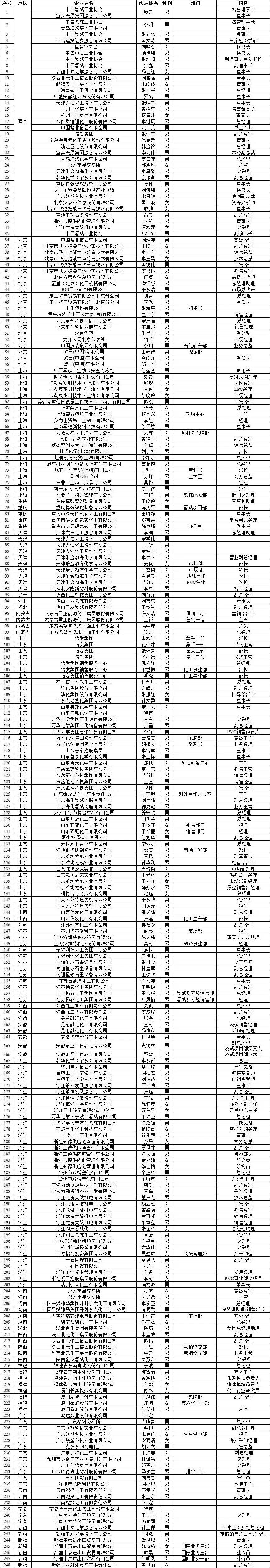 第九届中国国际氯碱会议报名名单