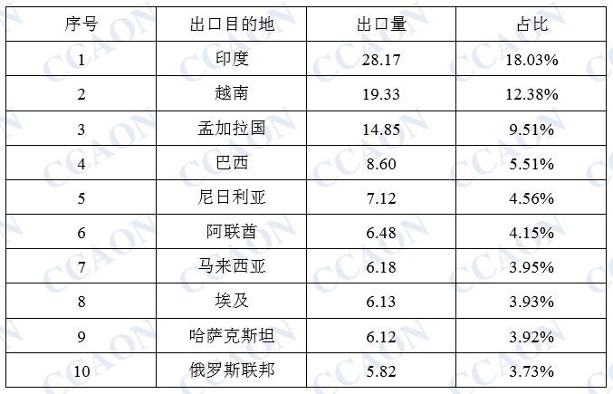 从出口目的地统计,印度仍是中国PVC纯粉出口的主要目的地,1-11月份,中国出口至印度的PVC纯粉达到28.17万吨,占中国出口总量的18%;出口至越南的PVC纯粉19.33万吨,占中国出口总量的12.38%;出口至孟加拉的PVC纯粉14.85万吨,占中国出口总量的9.51%。
