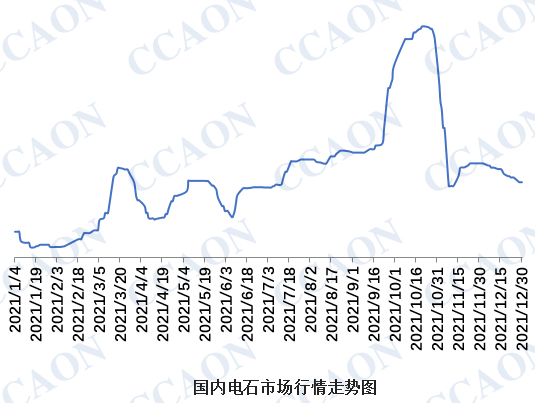 由于市场供应量逐渐充裕以及下游PVC行情的松动,国内电石行情在12月表现一般,成交重心不断下跌,但行情下行的速度明显减缓。具体分析来看,进入12月,内蒙古、陕西等地的限产力度均有较为明显的放松,宁夏地区电石厂家虽然仍受到限产政策的影响,但整体开工负荷却有小幅的上调。电石货源供应量的不断提升,导致前期货源偏紧的局面消失,取而代之的是越来越多的氯碱企业出现电石进厂压车卸货的现象,其不断压低电石采购价格。下游市场方面,国内电石法PVC行情在12月震荡走低,但装置整体开工负荷仍较为稳定,对电石行情形成了一定的支撑。原料市场,虽然煤炭价格高位回落,但兰炭厂家开工负荷不高,货源供应较为紧张,行情稳定在相对高位。