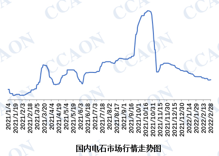 需求端,节前,西北个别电石法PVC装置因故停车,节后呼和浩特地区疫情出现反复,当地部分外采电石的PVC企业降负减产,导致内蒙古地区电石外销量增大。2月下旬,新疆地区电石装置因环保等原因难以保持稳定负荷,部分PVC、BDO企业自内蒙采购电石货源,缓解了当地市场的供需矛盾,为月末行情的回暖提供了一定的支撑。