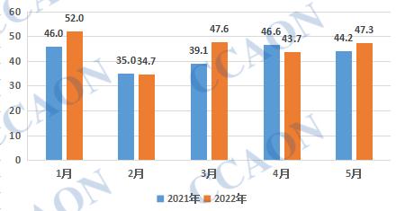 根据最新的海关统计数据,2022年5月份中国PVC地板出口量为47.31万吨,环比上月出口量43.73万吨增加8.18%,同比去年5月份44.24万吨的出口量增加6.95%。2022年1-5月份中国PVC地板累计出口225.35万吨,与去年同期的210.91万吨相比,增长了6.85%。据了解,累计出口增速放缓的主要原因是远洋运力不足,导致部分订单延期交付,另外,部分下游客户向东南亚地区询单,也在一定程度上对中国PVC地板的出口造成了影响。