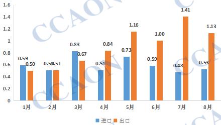 2022年1-8月我国糊树脂进出口统计 (单位:万吨)