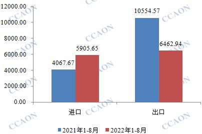据最新海关数据显示,2022年8月,我国氯化氢(盐酸)进口1018.95吨,同比增加98.43%;出口852.25吨,同比减少0.65%。1-8月,我国氯化氢(盐酸)累计进口5905.65吨,同比增加45.19%;累计出口6462.94吨,同比减少38.77%。