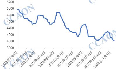 下游行情成为影响国内电石市场走势的主导因素,10月中旬开始,国内PVC行情持续下行,特别是进入11月后,价格下跌速度明显加快。单就PVC产品而言,西北一体化企业同样出现较大的亏损,华北、华中等外采电石的氯碱企业多选择保持烧碱负荷的同时降低PVC装置的开工,导致当地电石需求量持续萎缩,加大了电石行情回暖的难度。