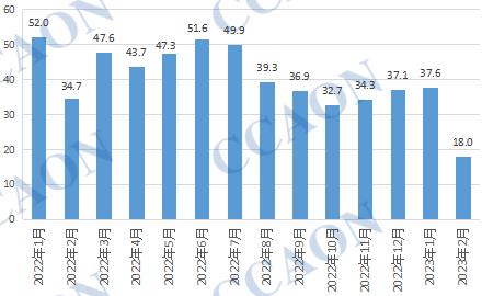 2022-2023年我国PVC地板出口量统计 (单位:万吨)