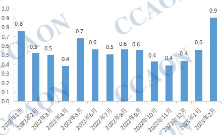 据最新海关统计数据显示,2023年1月当月,我国氯乙酸出口量为0.6万吨,同比减少26.6%;2月份,我国氯乙酸出口量为0.9万吨,同比去年增加72.2%。今年1-2月份,我国氯乙酸累计出口1.5万吨,与去年同期的1.3万吨相比,增长13.8%。据了解,国内下游企业需求未见明显改善,市场供应量较大,氯乙酸厂商积极寻求出口以缓解自身压力,2月份氯乙酸出口量环比增长明显,但出口价格却续回落。