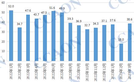 2022-2023年我国PVC地板出口量统计 (单位:万吨)