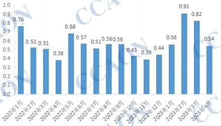据最新海关统计数据,2023年4月我国氯乙酸出口量为0.54万吨,环比上月下降34.01%,同比去年增长41.78%。2023年1-4月份,我国氯乙酸累计出口2.83万吨,同比增长30.02%。后期出口情况来看,5月份国内氯乙酸市场行情保持低位运行,下游农药、中间体等行业需求不足,氯乙酸厂家积极寻求出口以缓解出货压力,就商家接单情况来看,预计5月出口量将有所回升。