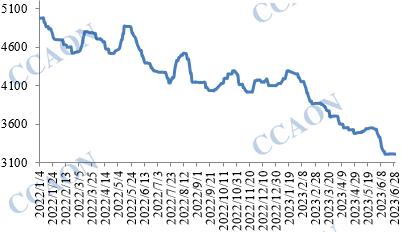 2023年上半年,受原料兰炭行情下行以及下游PVC需求低迷的影响,国内电石市场持续疲软,特别是6月份,由于煤炭价格回落,国内电石成交重心快速走低,已降至2020年10月以来的最低点。
