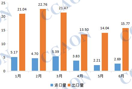 从上半年的单月出口数据分析,一季度单月出口量连续突破20万吨,为出口市场创造了良好开局。一季度,印度当地贸易商和下游加工厂集中采购,前三个月,我国出口印度的PVC纯粉分别为14.5万吨、14.4万吨和8.6万吨,在当月出口量中的占比分别达到了68.7%、63.2%和40.3%。进入二季度,一方面由于贸易措施的影响小于市场预期,另一方面印度进入传统雨季,需求量有所减少,我国出口至印度的PVC数量出现回落,单月出口量降至4.0万吨、5.8万吨和6.7万吨,在当月出口量中的占比分别为29.9%、41.3%和42.6%。从进口情况来看,上半年虽然整体进口同比增加明显,但相对数量有限,主要集中在东南沿海地区部分出口订单的来进料加工,对国内市场的影响有限。