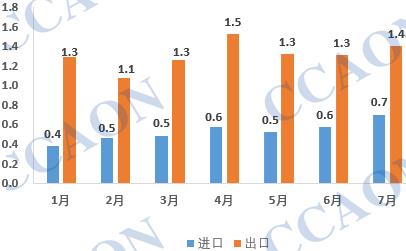根据海关最新统计数据,2023年7月当月我国糊树脂进口0.7万吨,环比增长18.2%,同比增加40.8%;当月出口1.4万吨,环比增加6.2%,同比减少1.7%。 2023年1-7月,我国糊树脂累计进口3.7万吨,较去年同期减少13.7%;累计出口9.1万吨,与去年同期相比增长50%。