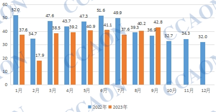 根据最新的海关统计数据,2023年9月份我国PVC地板出口量为42.8万吨,环比上月增加6.5%,同比去年上涨16.1%。2023年1-9月份我国PVC地板累计出口335.9万吨,与去年同期403.0万吨相比,减少16.6%。 数据显示,近三月我国PVC地板出口量呈上升走势,但提升较为缓慢,国内PVC地板制品企业后期订单情况一般,出口量较难有大的突破。