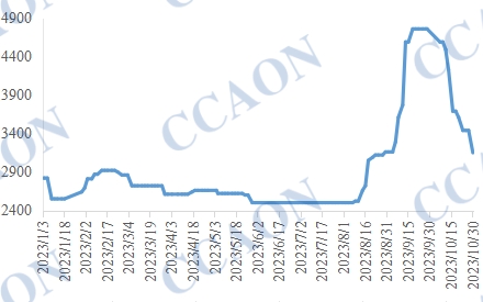 分析认为,近期氯乙酸行情持续下行主要受到原料行情回落的影响,厂商成本支撑不断走弱,低价报盘增多。具体来看,目前液氯全国均价为311元/吨,较上本月初下调150元/吨左右。冰醋酸生产企业因前期行情走高,在国庆节后整体开工负荷不断提升,而下游需求未见明显变化,随着库存的逐渐累积,报价震荡下行,当前平均价格环比下跌1600元/吨左右。