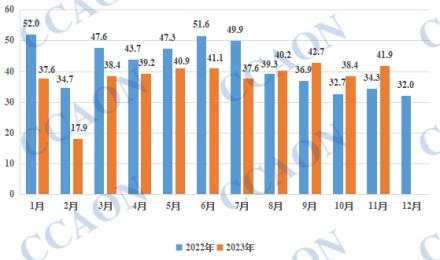 2022-2023年我国PVC地板出口量统计 (单位:万吨)