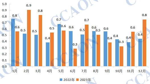 2022-2023年我国氯乙酸出口情况统计 (单位:万吨)