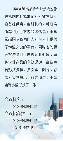 “氯碱论坛”是氯碱行业最高级别的行业论坛,每年举办一届。论坛由氯碱工业协会主办,氯碱网承办,至今已成功举办二十届。会议涵盖氯碱企业、上游原料企业、下游贸易商、设备企业等高层人士,平均参会人数在300人。